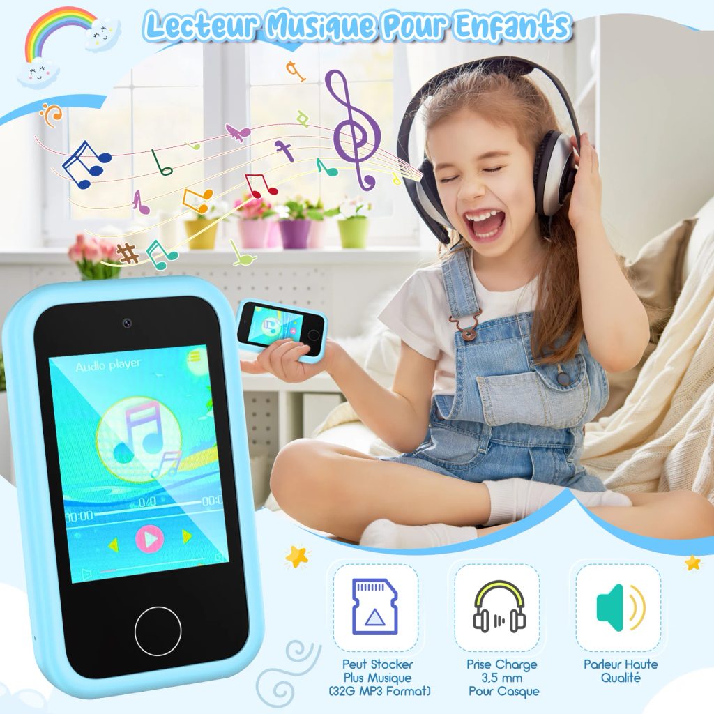 Vores smartphone til børn er den ideelle ledsager for små opdagelsesrejsende i den digitale verden. Med en kombination af sjove spil, kvalitetslyd fra MP3-afspilleren, dual kamera og interaktiv touchskærm tilbyder denne telefon uendelige muligheder for læring og underholdning.