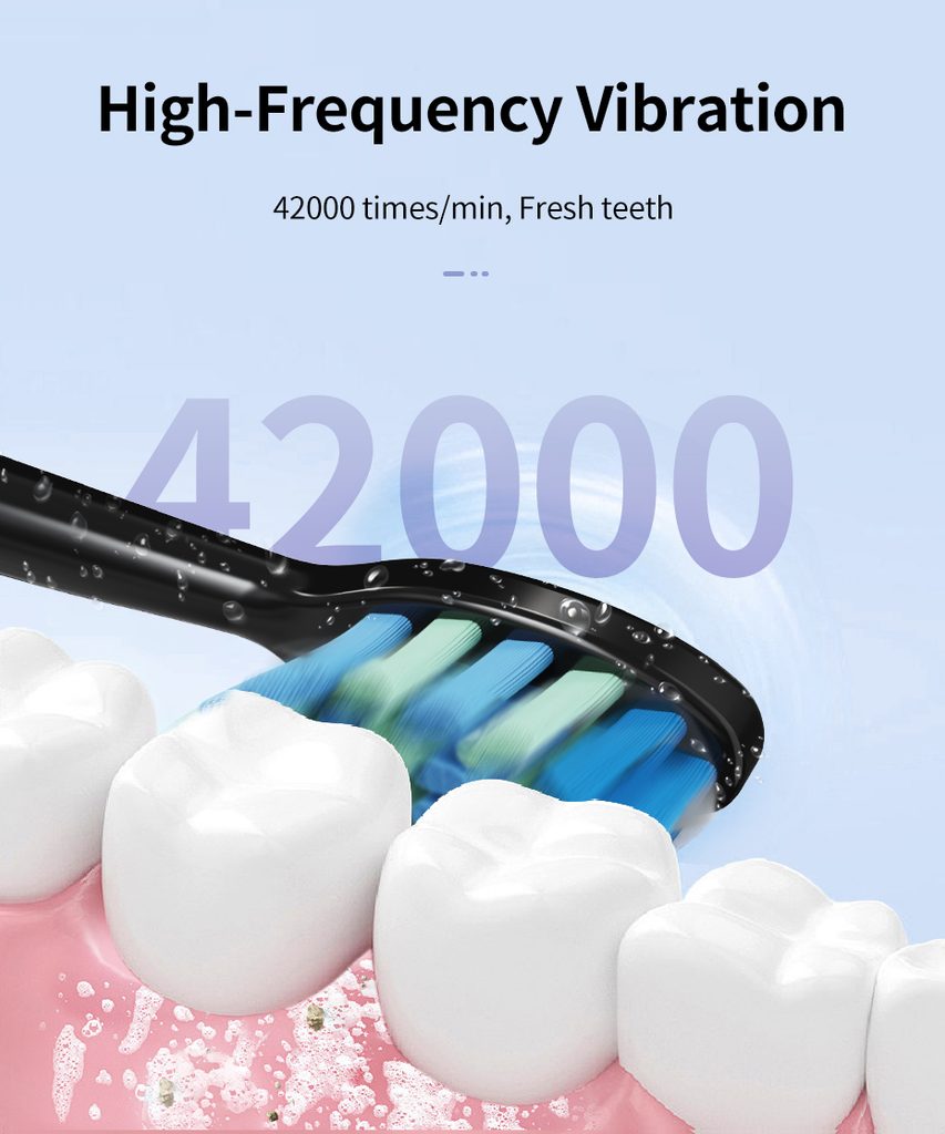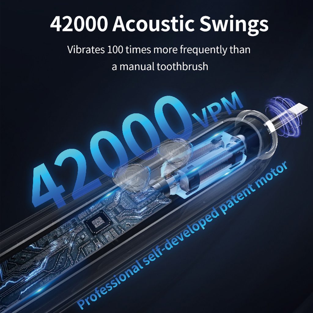 Yderst kraftfuld motor skaber op til 42.000 vibrationer per minut. Fjerner effektivt plak, rengør mellemrum mellem tænderne og efterlader en følelse af perfekt friske tænder.