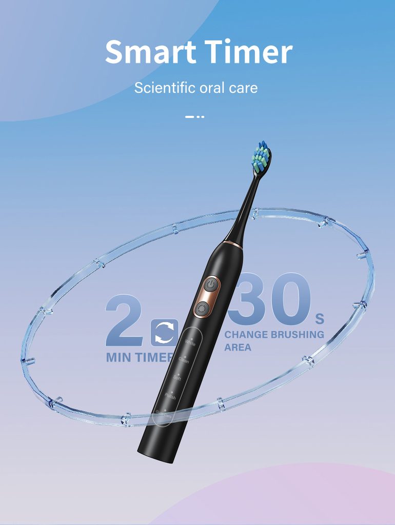 Integreret timer overvåger den anbefalede børstetid. Hvert 30. sekund giver den besked om at skifte område i munden.