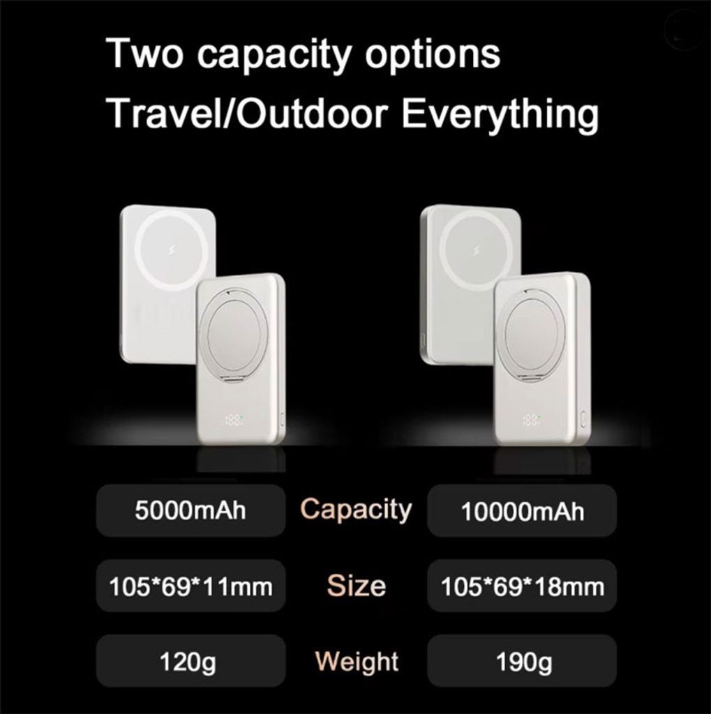 UltraThin MagSafe powerbank er en moderne og elegant løsning for alle, der har brug for at have energi altid ved hånden. Den tilbyder kompakte dimensioner, lav vægt og et innovativt roterende metalstativ, som gør det nemt at følge telefonens skærm selv under opladning.